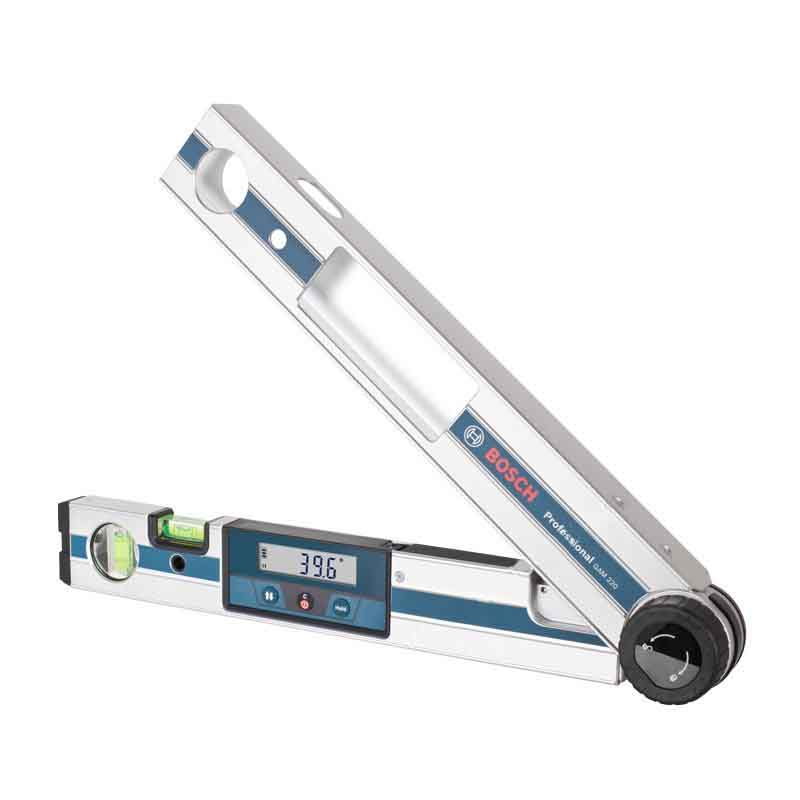 Угломер Bosch GAM 220 — строительный цифровой прибор для измерения углов между конструкционными элементами и выполнения необходимых расчётов. Выполненный в виде прочной алюминиевой конструкции с 40-сантиметровыми плечами измеритель углов сочетает в себе высокую точность и предельную простоту выполнения работ.